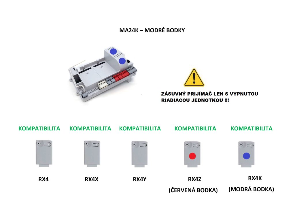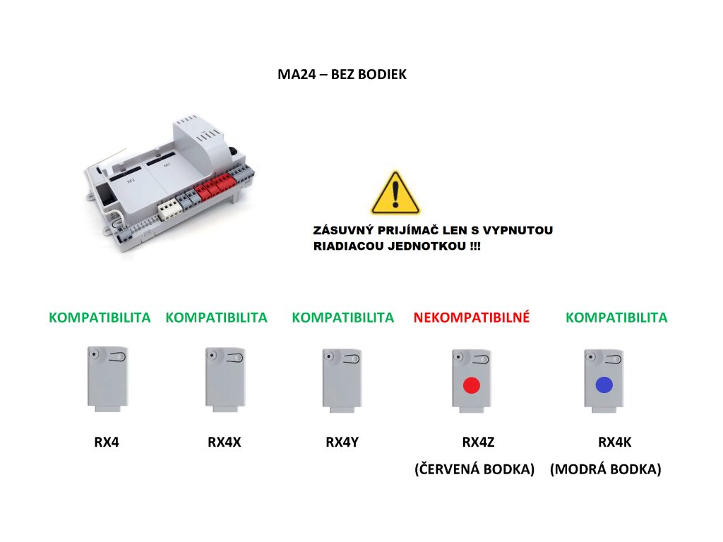 900MA24Z základ řídící jednotky CT-14AB2Z 24V bez relé modulů, nutná programovací jednotka 9 DYL, kompatibilní s přijímačem RX4 a RX4Z přijímač je třeba vložit do řídící jednotky ještě před uvedením pod napětí. jakmile dostane řídící jednotka napětí tak rozpoznává zda je vložen přijímač RX4, RX4X, RX4Y a RX4Z.