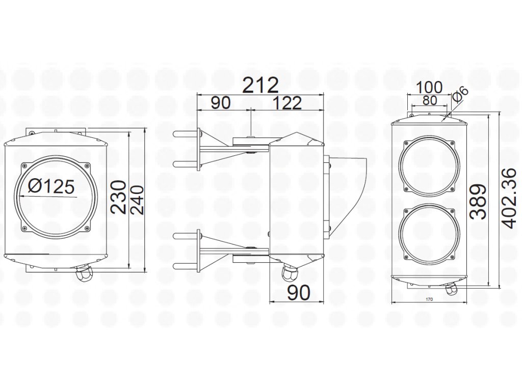 ASF Semafor dvoukomorový, červená/zelená žárovka E27, hliníkové tělo, 230 V, IP65