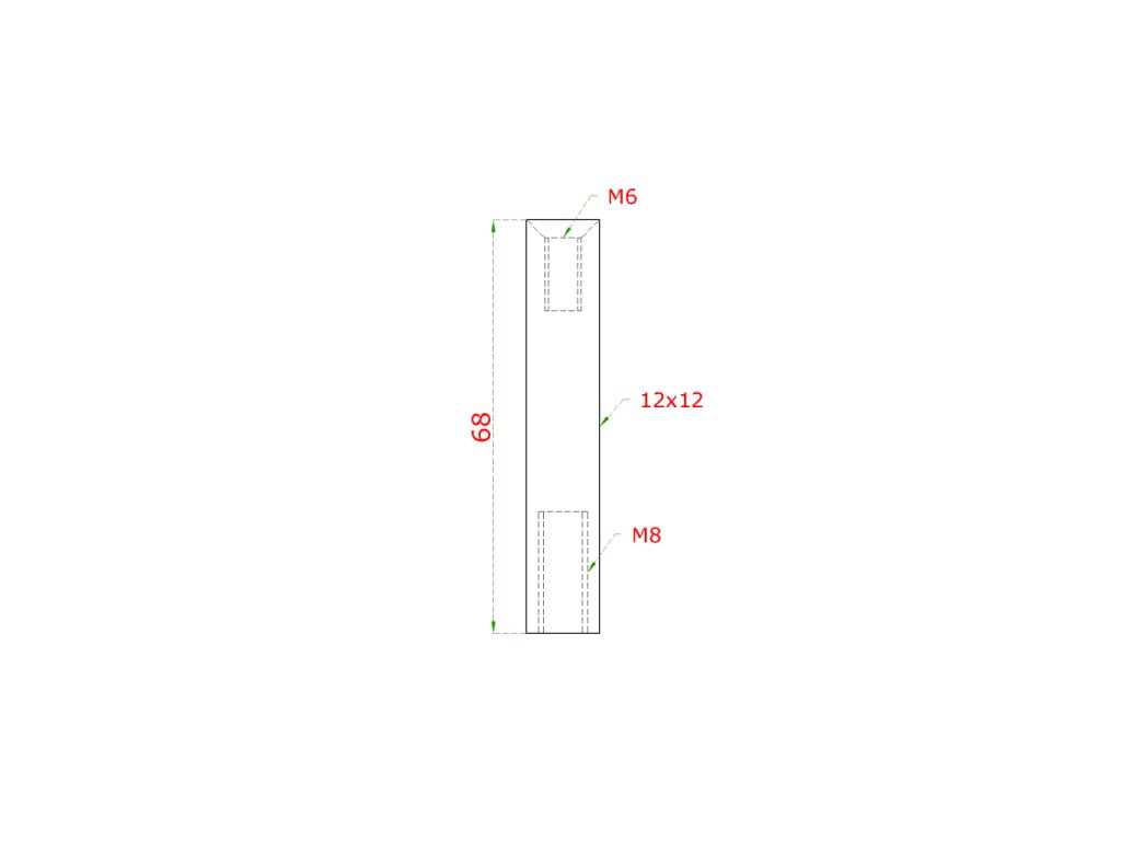 Čep (12x12 mm, L: 68 mm / vnitřní závit M6 - vnitřní závit M8x25 mm), broušená nerez K320 / AISI304