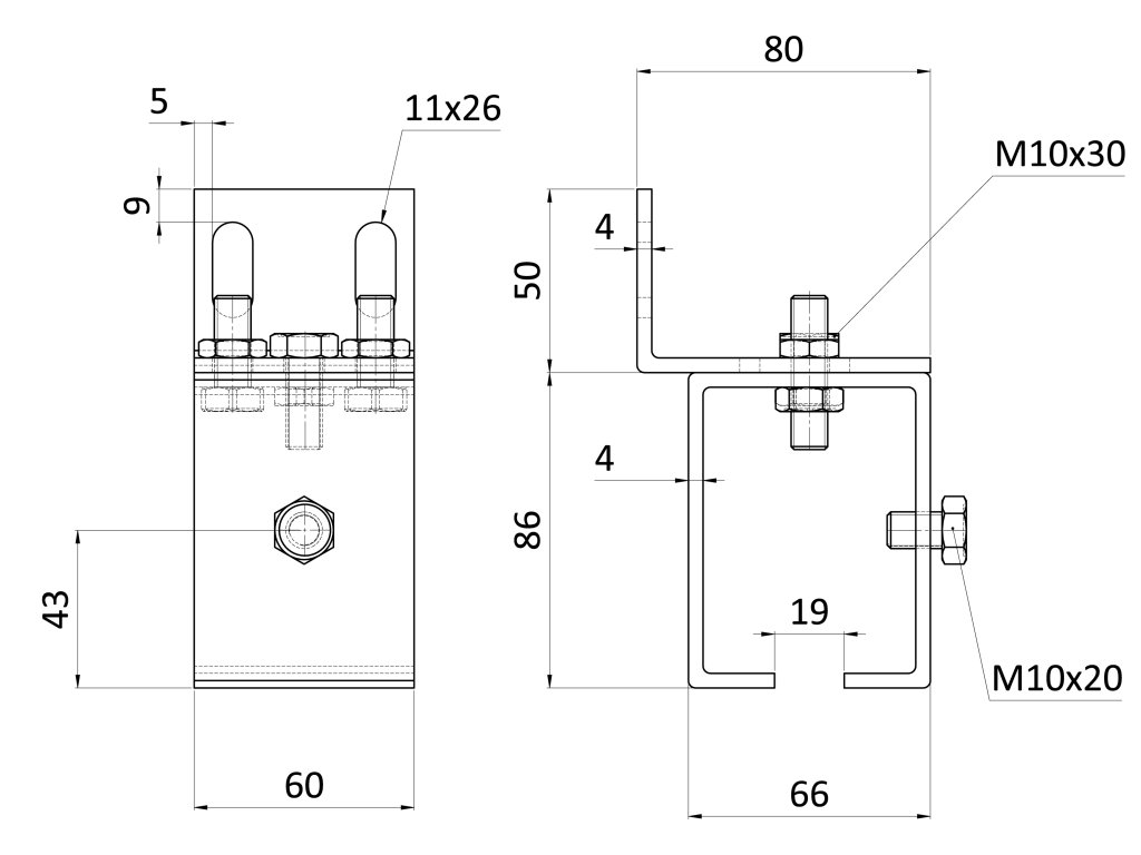 Držák boční pro profil GRANDE 57x68x3mm závěsného systému