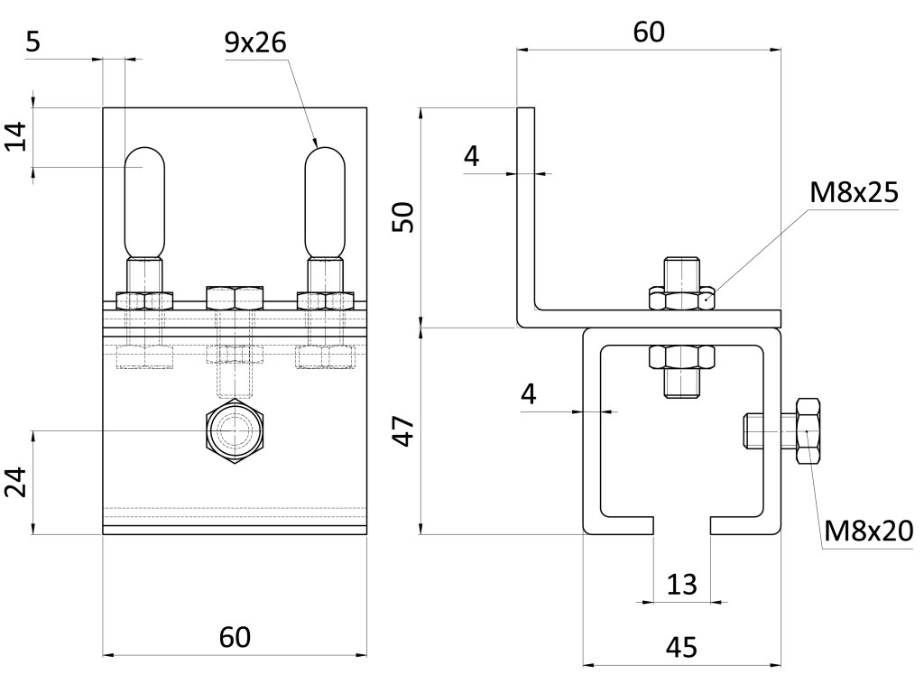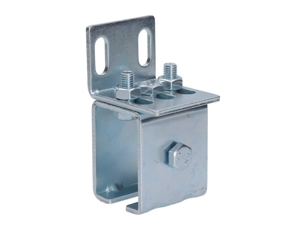Držák boční pro profil Piccolo závěsného systému s povrchovou úpravou pozink je klíčovým prvkem pro pevnou a spolehlivou montáž vodící lišty Mono kolejnice Piccolo.