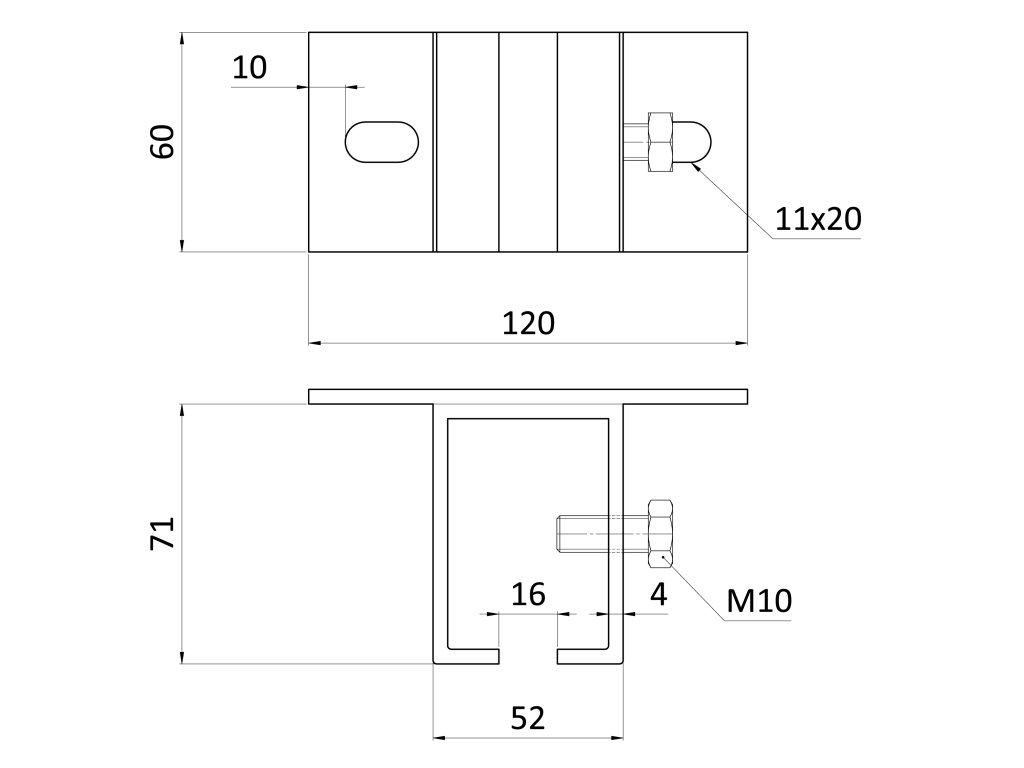 Držák horní pro profil MEDIO 43x53x2,5mm závěsného systému