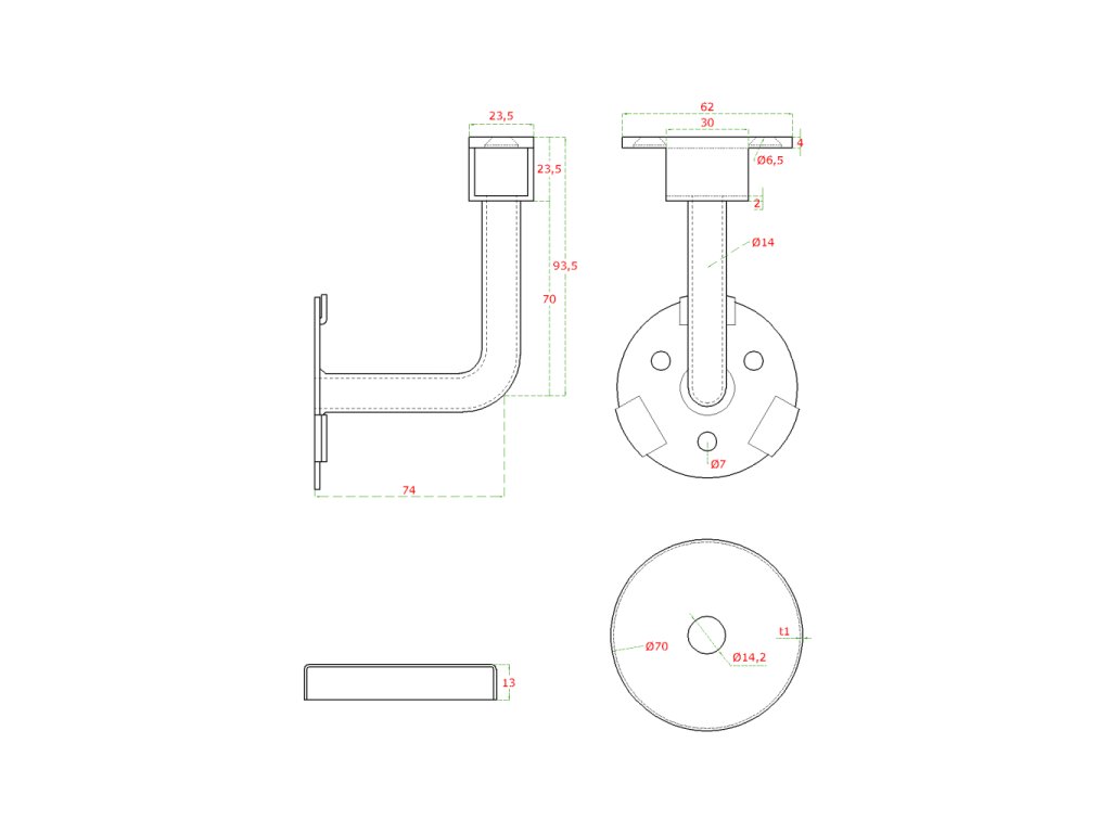 Držák LED madla na zeď na madlo EB1-HM42, EB1-JHM42 a EB1-JHM60x40; broušená nerez K320/AISI304