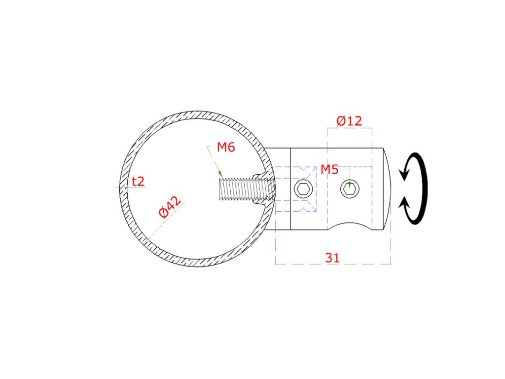 Držák tyče průměr=14mm (koncový-pravý) na trubku průměr=42,4mm (30x22mm), broušená nerez K320/AISI304
