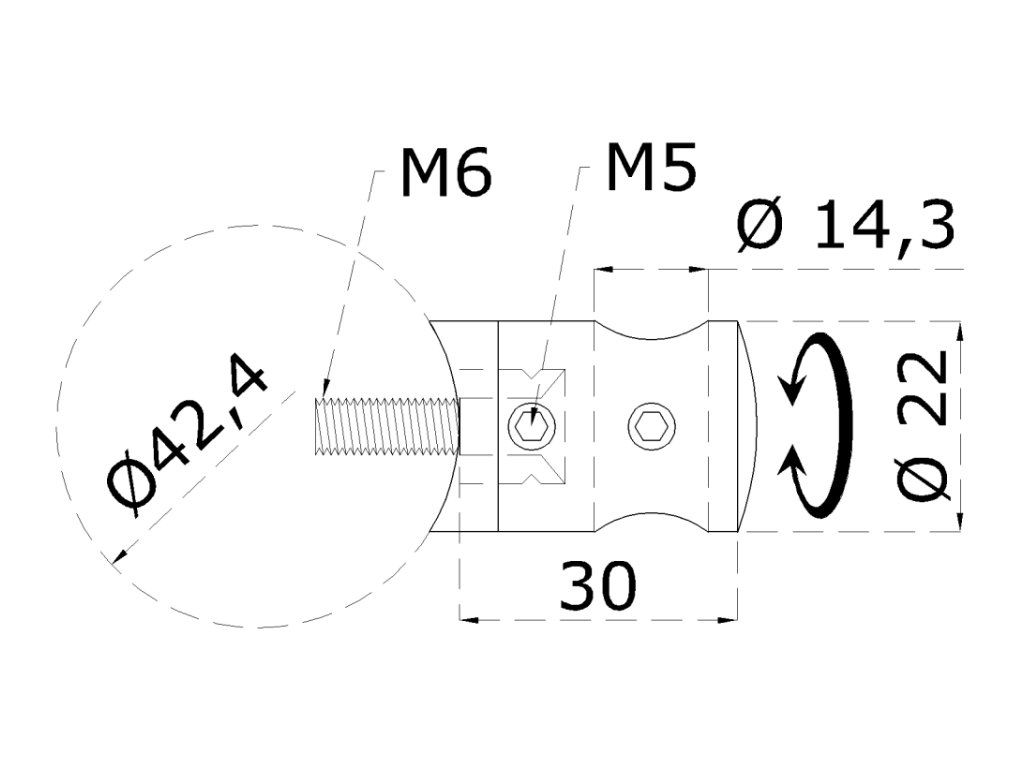 Držák tyče ? 14 mm na trubku ? 42,4 mm (30x22 mm), broušená nerez K320 / AISI304