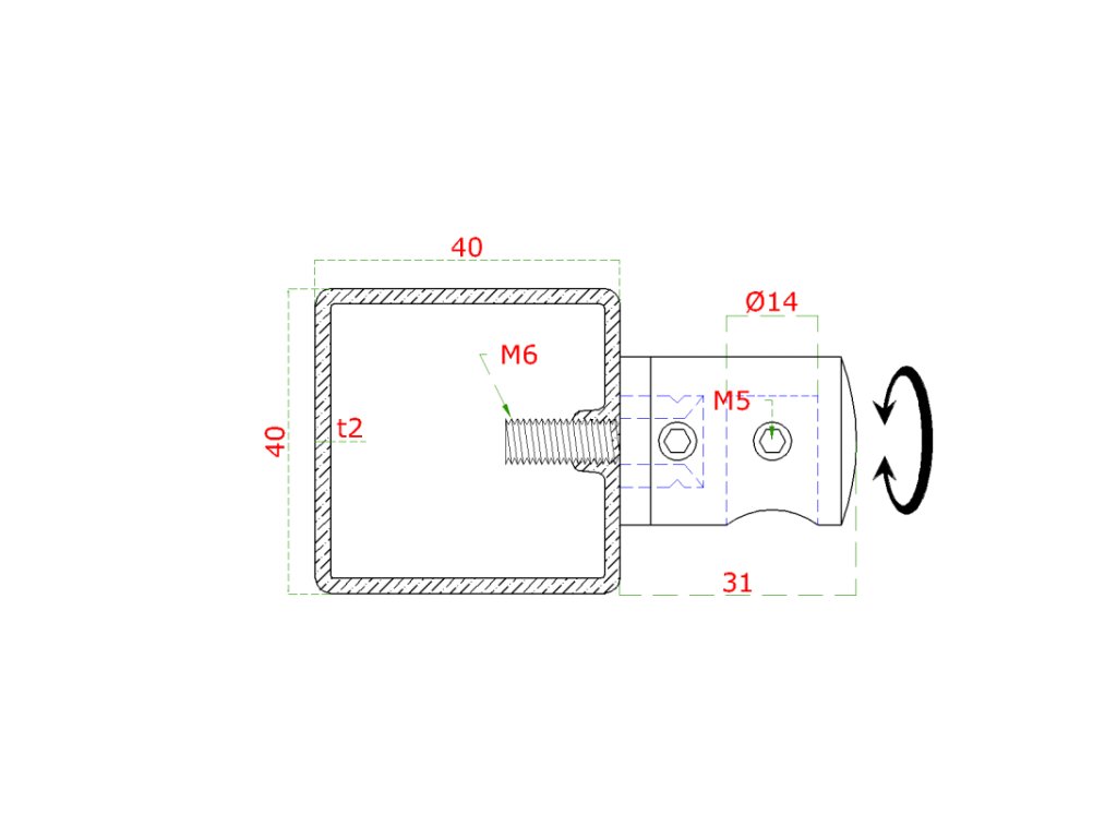 Držák tyče ? 14 mm (koncový-pravý) plochý (30x22 mm), broušená nerez K320 / AISI304
