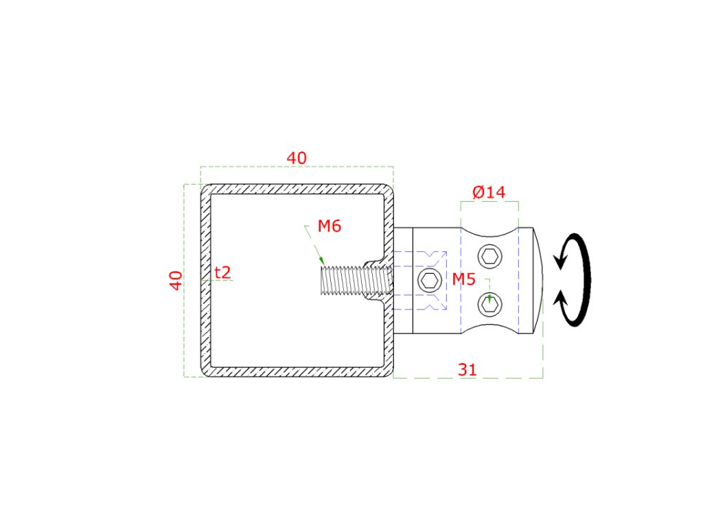 Držák tyče ? 14 mm spojovací, přechodný, plochý (30x22 mm), broušená nerez K320 / AISI304