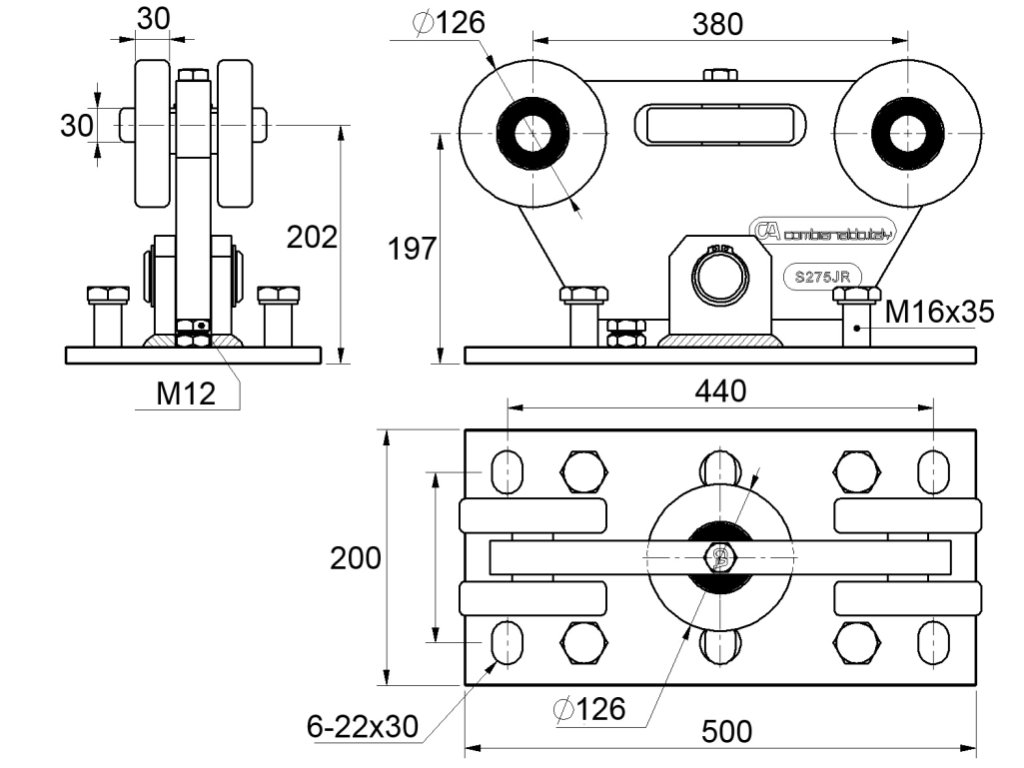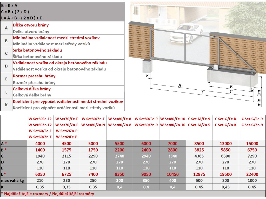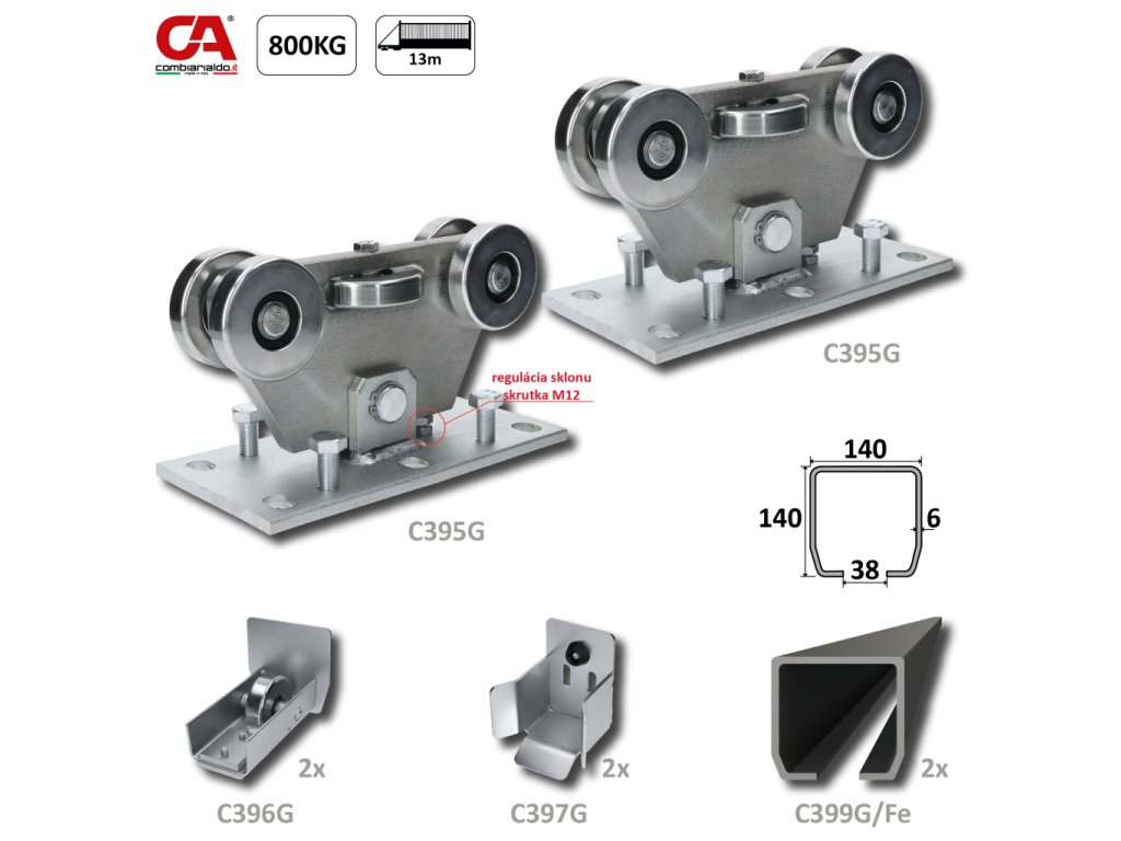 Tento systém je stvořen pro samonosné brány vážící do 800 Kg a šířku průjezdu až 13 metrů. Vybrané vozíky umožňují regulovat sklon šroubem M12.