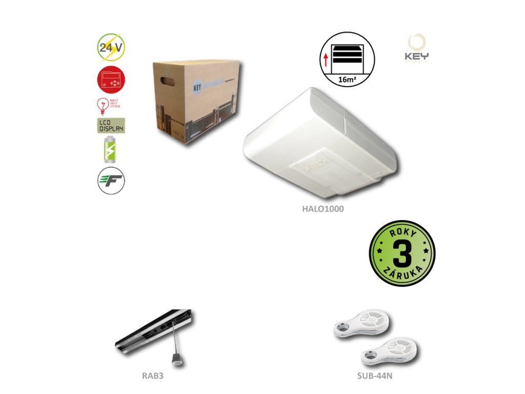 HALO 1000N pohon pro sekční vrata do 16m2 / 130kg s vodicí lištou RAB3, 2x SUB-44WR