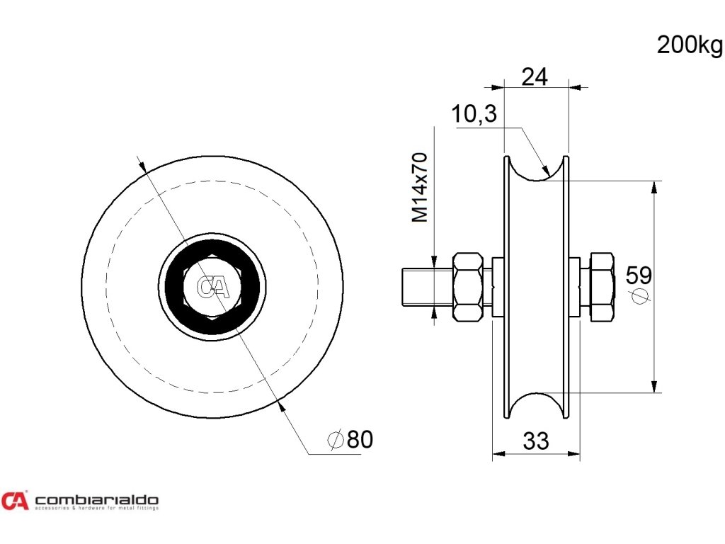 Kolečko o průměru 80mm se šroubem, jednoložiskové Combi Arialdo, C902/20 profil, nosnost 200kg