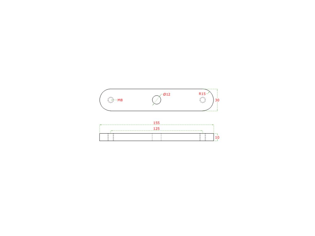 Kotvící plotna (155x30x10mm / M8 / M12), broušená nerez K320 /AISI304