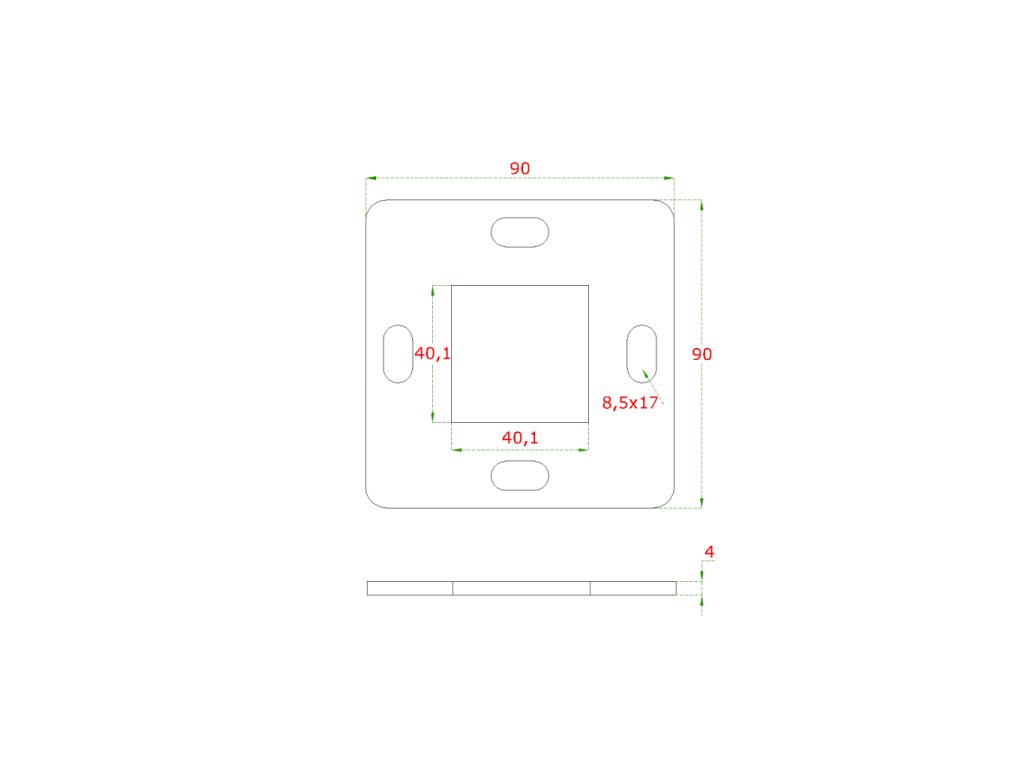 Kotvící plotna (90x900mm), otvor: 40,1x40,1mm, broušená nerez K320/AISI304