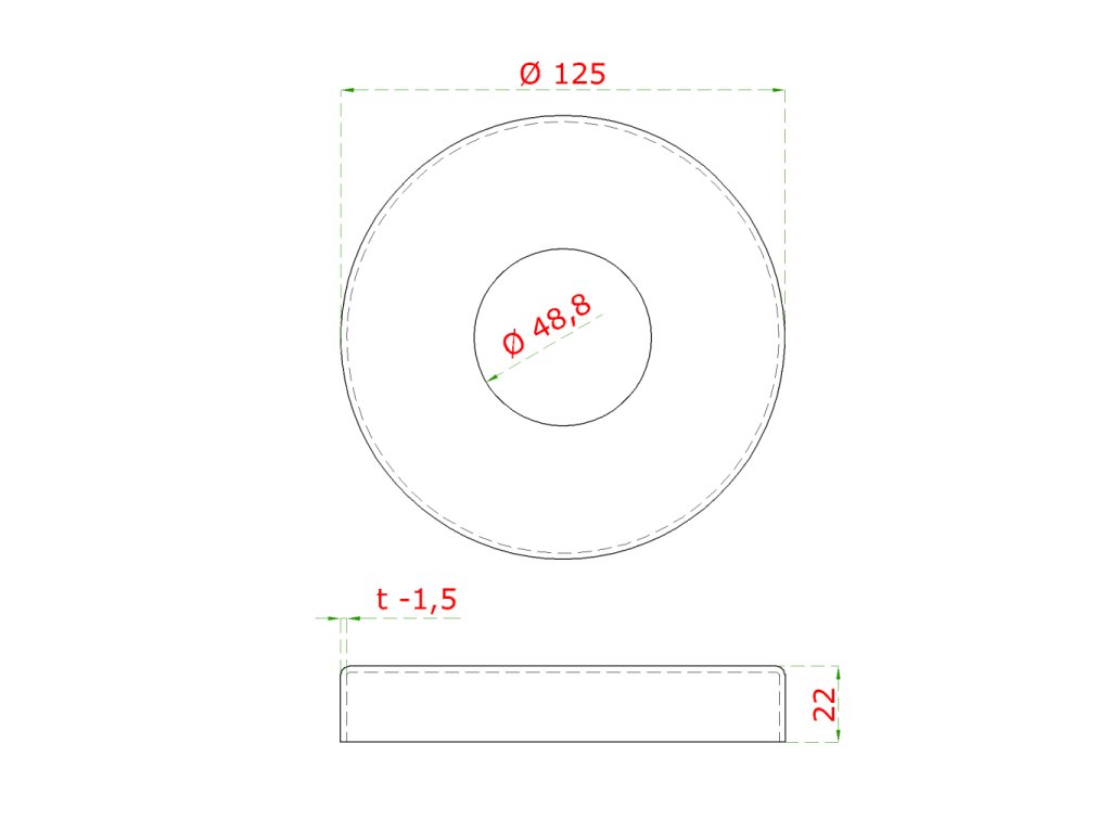 Kryt příruby (průměr=125 / 22mm) na trubku průměr=48,3mm, broušená nerez K320/AISI304