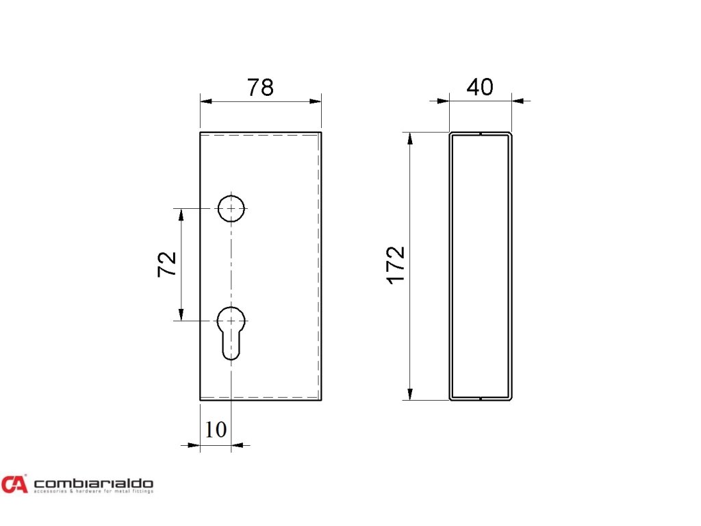 Kryt zámku od popredného talianského výrobcu Combi Arialdo. Povrchová úprava pozink. Použitie pre posuvné brány. Kryt sa navára na jockel 50mm - kombinácia so zámkom C351 a C353. Počet kusů v balení - 6.