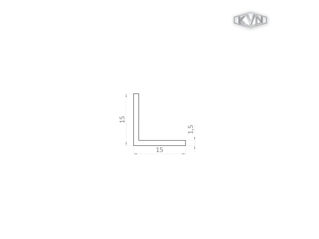 "L" profil 15x15x1,5mm, materiál EN AW-6060 T66, přírodní hliník bez povrchové úpravy, délka 6m