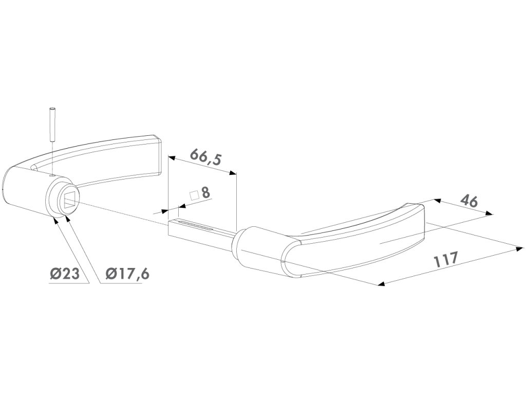 LOCINOX® 3006P - polyamidová klika, materiál: polyamid (černý), hřídel 8x8x66,5mm