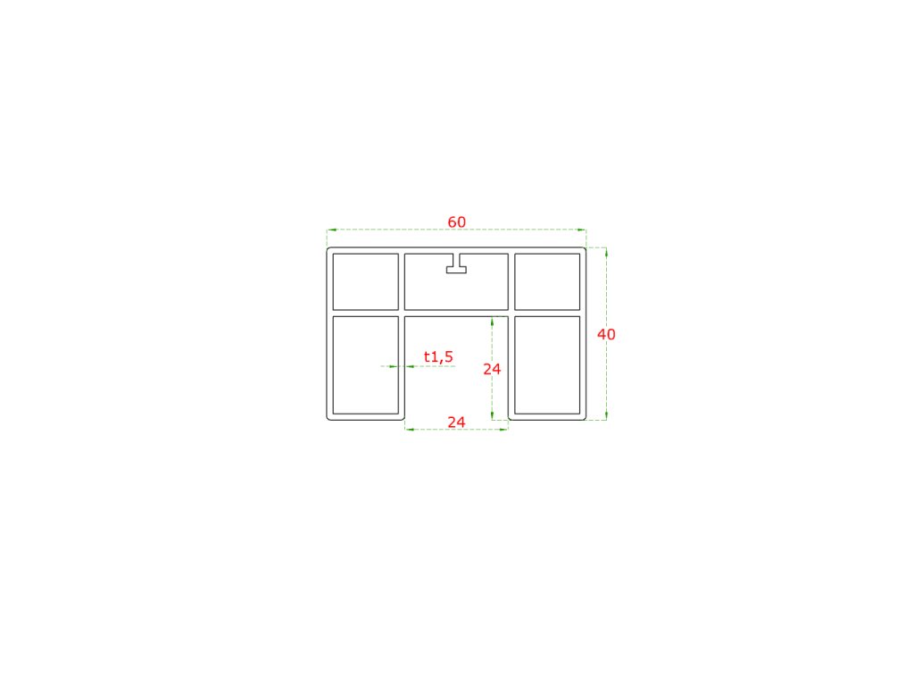 Madlo hliníkové (60x40x1,5mm / 24x24mm) pro sklo 8-17,5mm, bez gumových těsnění
