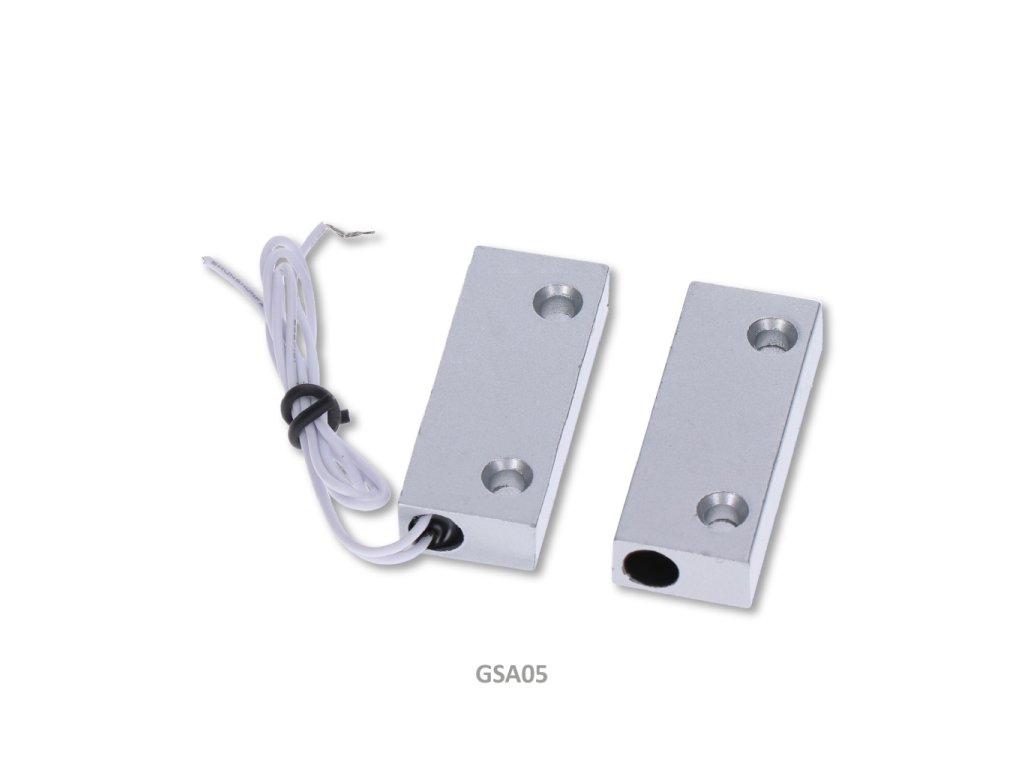 Magnetický spínač MS-05, kovový na použití v exteriéru, rozměr 49x49x9mm, dosah 1cm