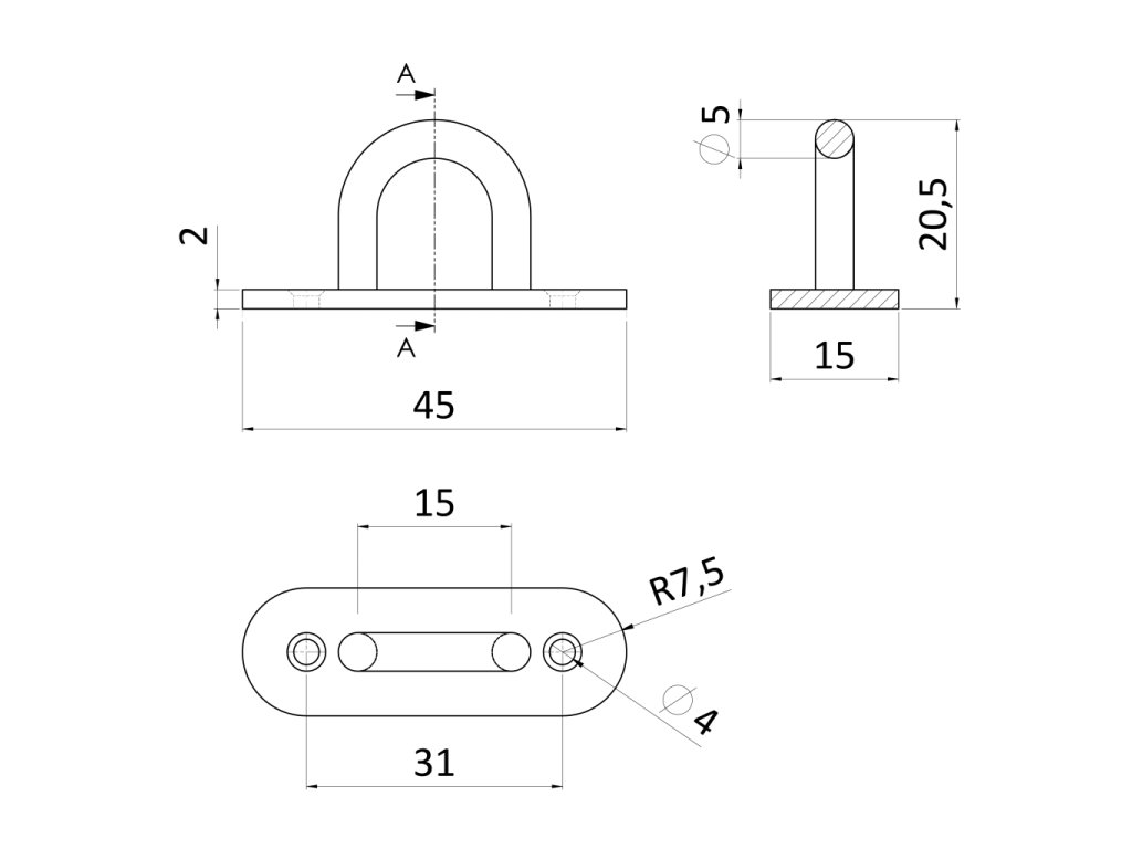 Nástěnný úchyt lanka oválný, broušená nerez K320/AISI304