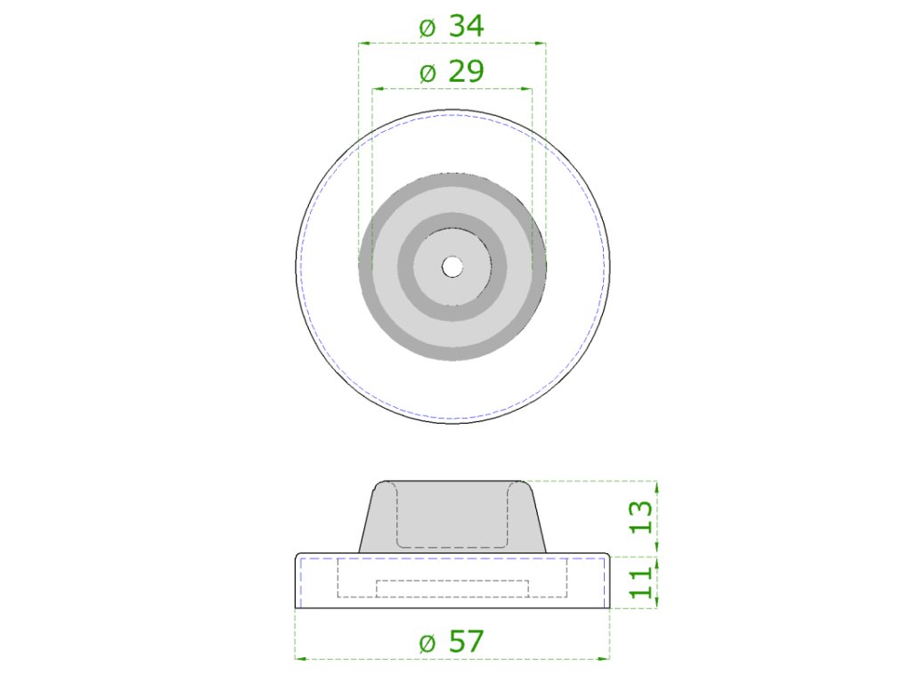 Nerezový doraz dveří s gumou (o průměru 57x24mm), broušená nerez K320/AISI304