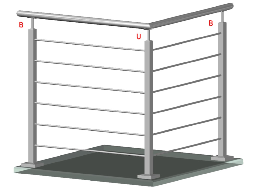 Nerezový sloup, vrchní kotvení, 6 děrový rohový, vrch pevný, 40x40x2mm, broušená nerez K320/AISI304
