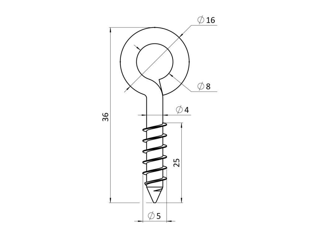 Nerezový šroub s okem, závit do dřeva, AISI304, 4x30