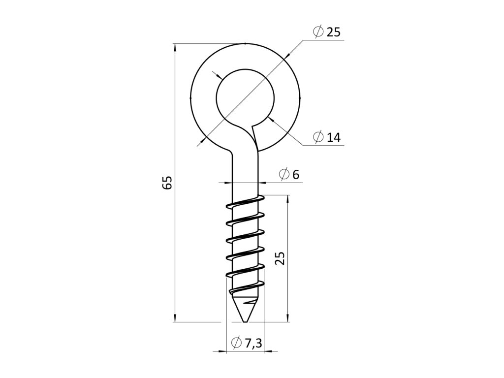 Nerezový šroub s okem, závit do dřeva, AISI304, 6x50