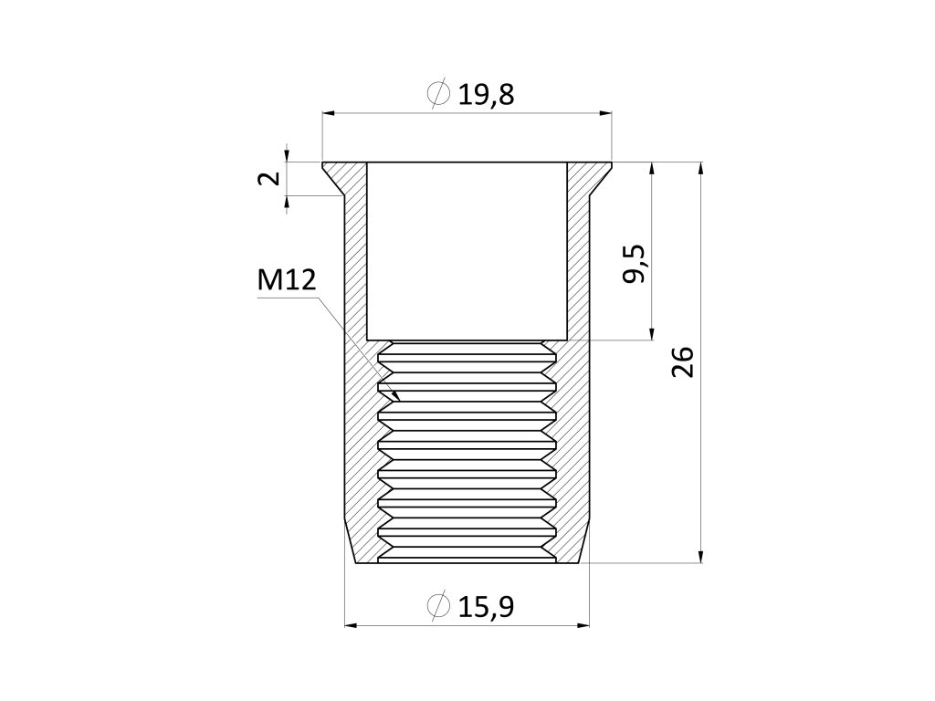 Nitovacia matica M12 so zápustnou hlavou, ryhovaný driek, oceľ-biely pozink