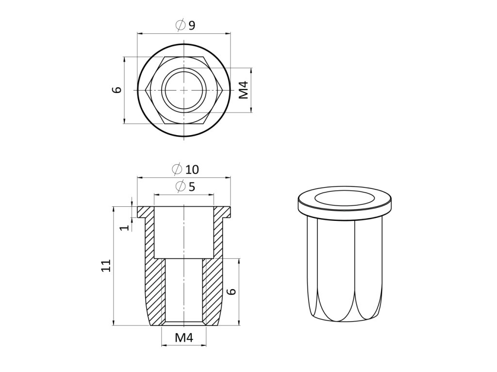 Nitovacia matica M4/0.3-2.0/ plochá hlava, hex, L=10mm, nerez