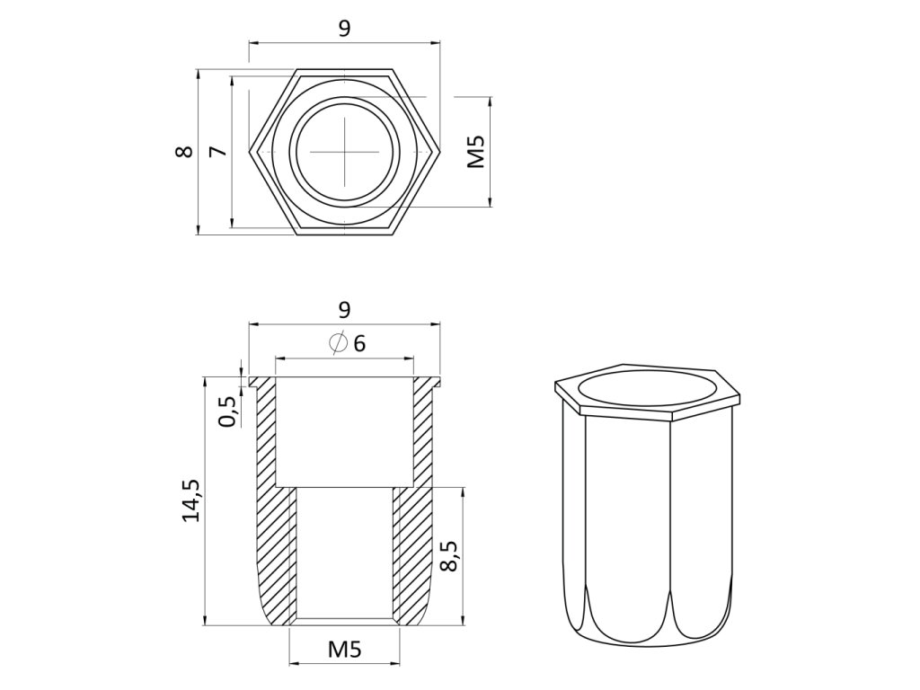 Nitovacia matica M5/0.3-2.5/ mikro hlava, hex, L=14.5mm, nerez