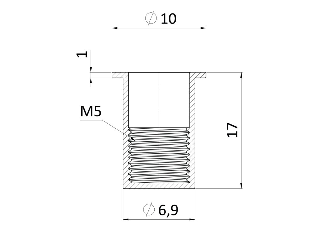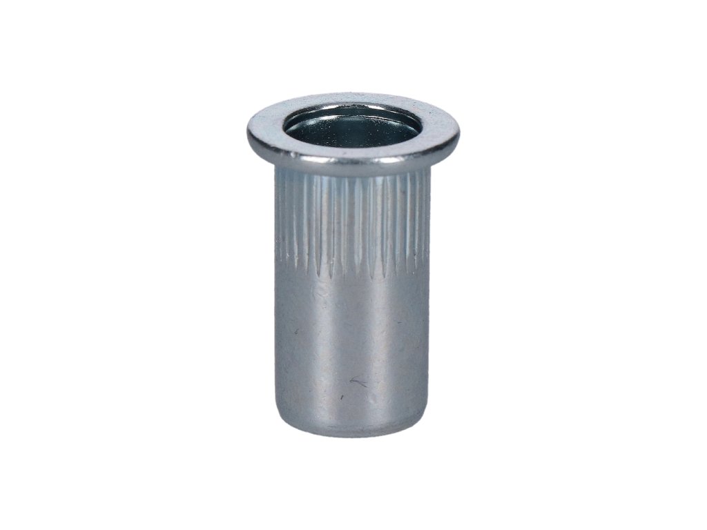 Nýrovací matice s plochou hlavou, rýhovaný dřík, uzavřená