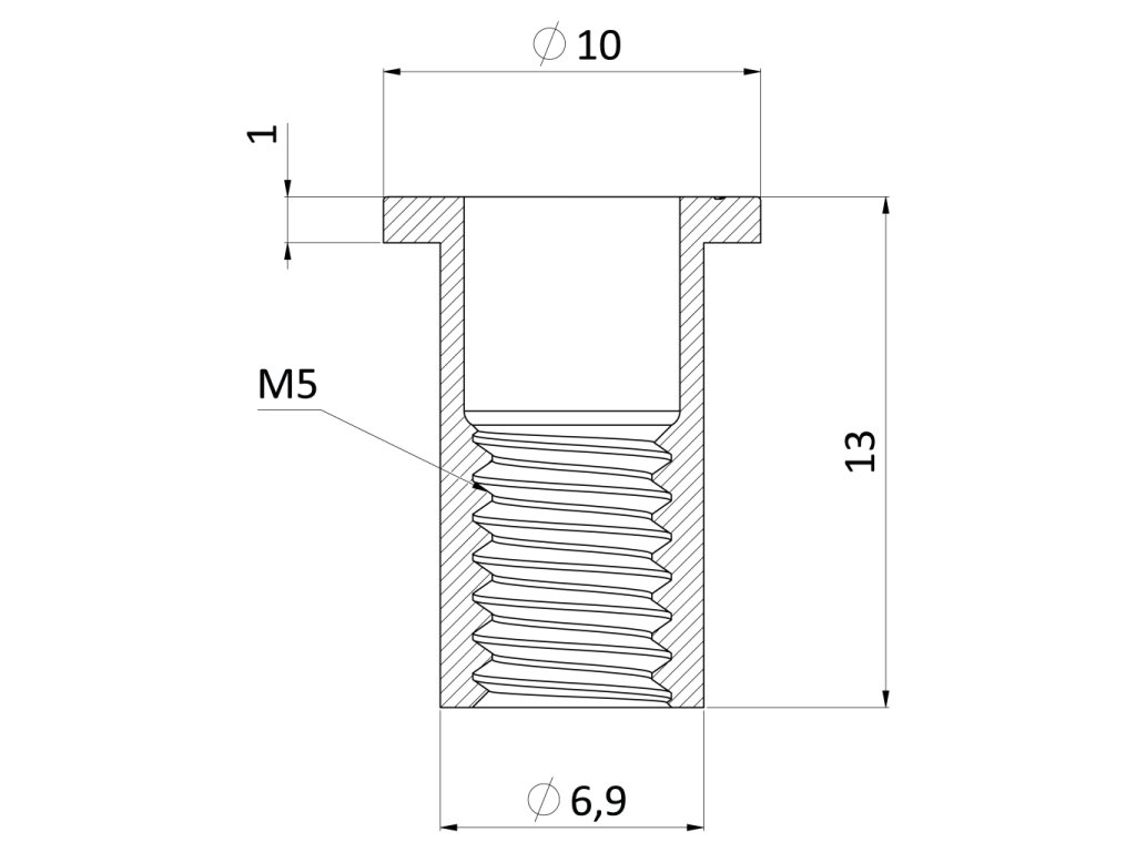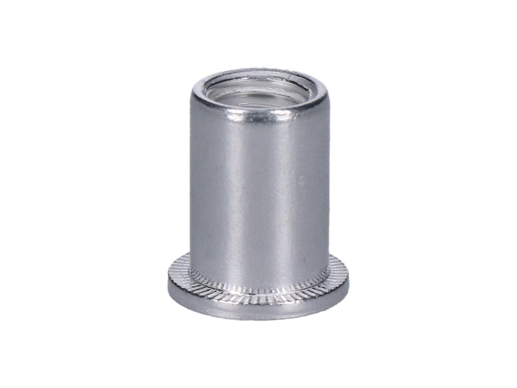 Nýtovací matice hliníková s plochou hlavou, hladký dřík