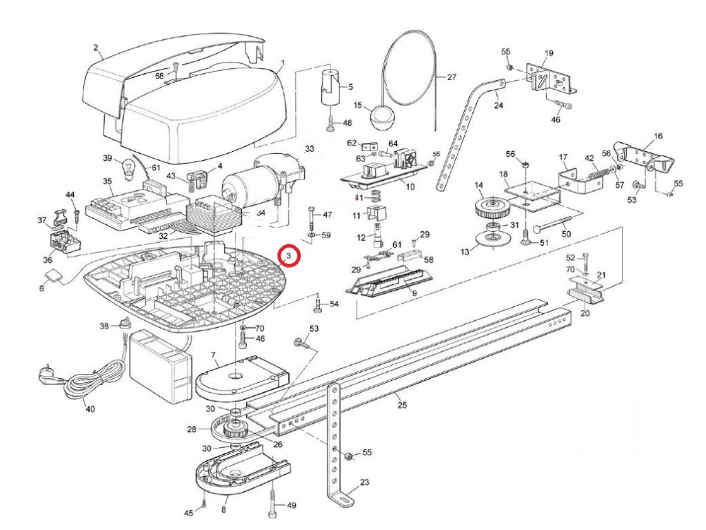 PPD1031A.4540 montážní plastová část pod motorek pro SPIN20, SPIN30, SPIN40.