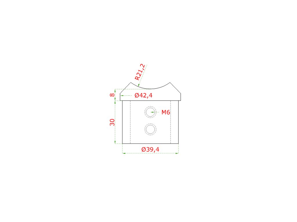 Přechod (průměr 42,4x1,5mm) na madlo 666.802.826 a trubku o průměru 42,4mm, lepený spoj, broušená nerez K320/AISI304