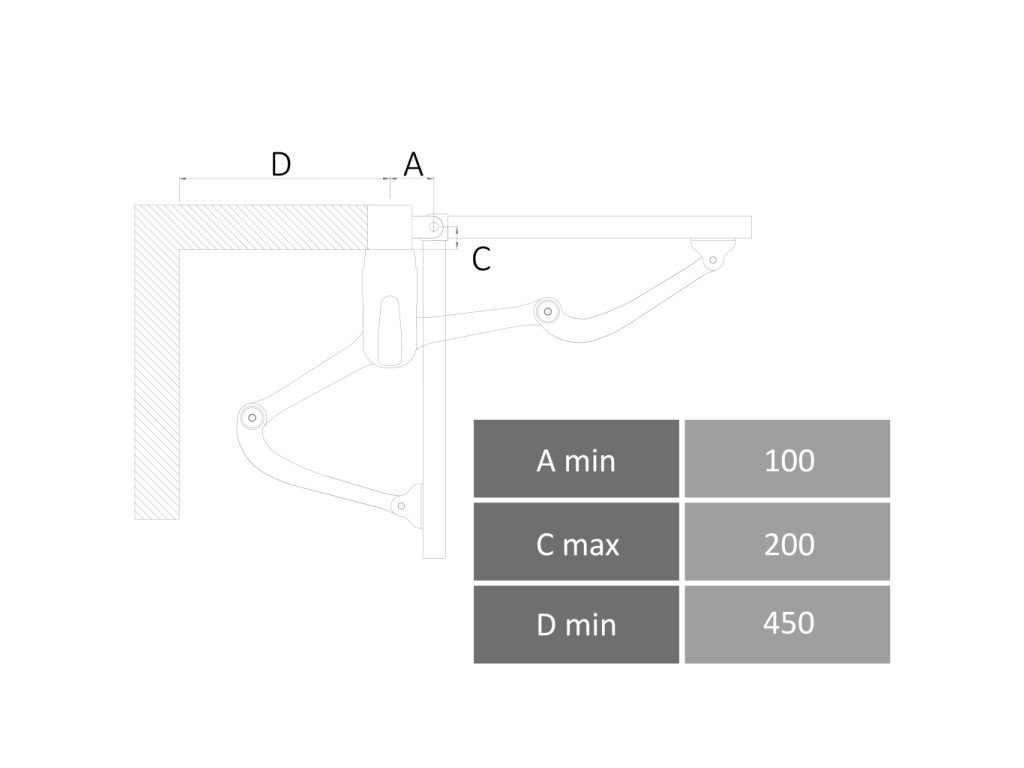 Pákový pohon pro křídlovou bránu s max. délkou jednoho křídla do 2,3 m.