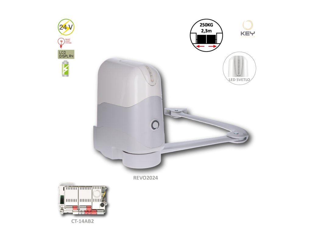 REVO pohon pro křídlovou bránu do 2,3m/křídlo, 24V, 140W, 120Nm se zabudovanou elektronikou 14AB