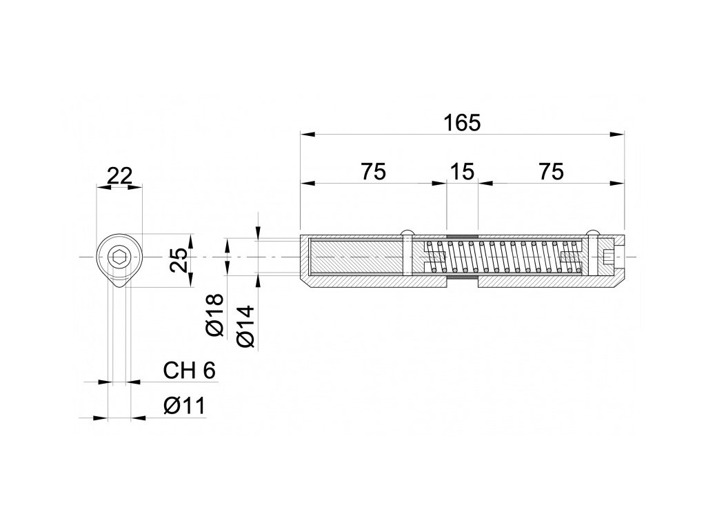 Samozavírací pant dvoudílný 165 mm, navařitelný, nastavitelná síla zavírání pomocí pružiny