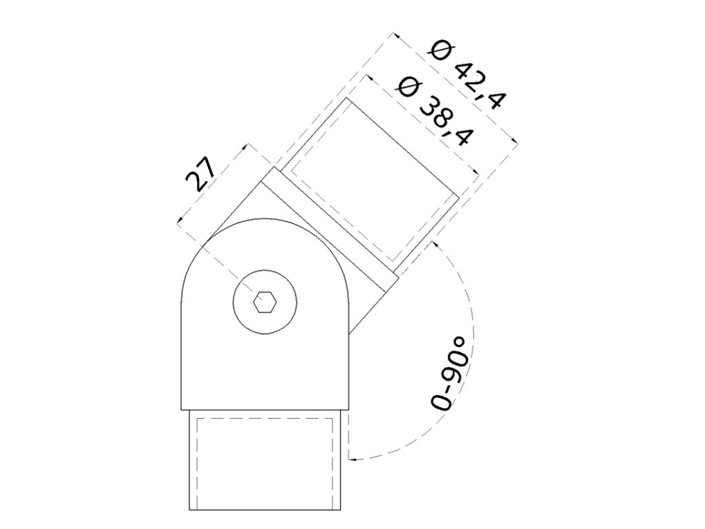 Spojka nastavitelná s kloubem na trubku o průměru 42,4mm, leštěná nerez AISI304