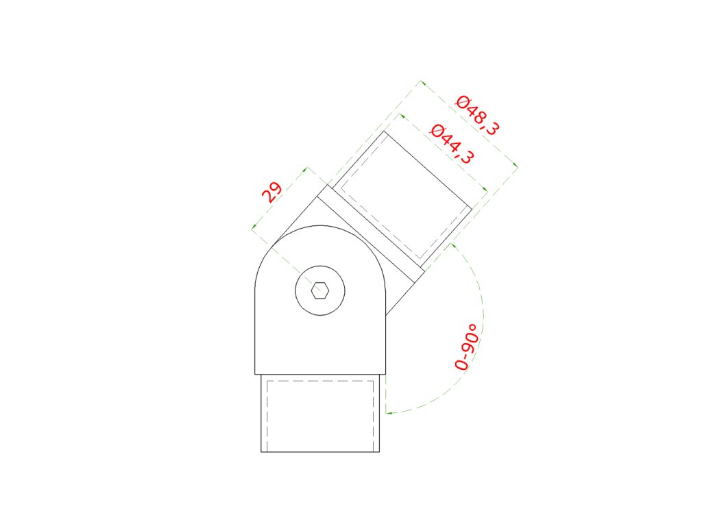 Spojka nastavitelná s kloubem na trubku ? 48,3 mm, broušená nerez K320 / AISI304