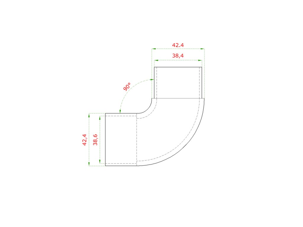 Spojka oblouková 90° na trubku o průměru 42,4mm, broušená nerez K320/AISI304
