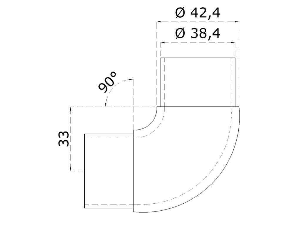 Spojka - oblouková 90° na trubku ? 42,4 mm, broušená nerez K320 / AISI316