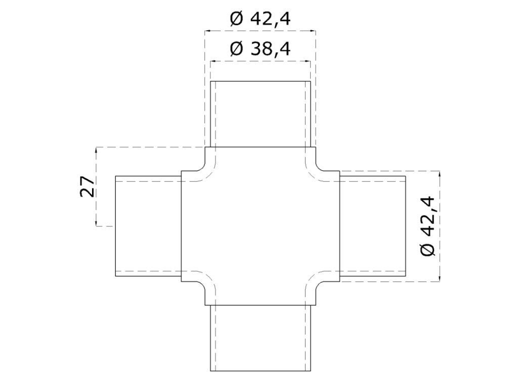 Spojka - přechod, křížový kus na trubku ? 42,4 mm, nerez broušená K320 / AISI304