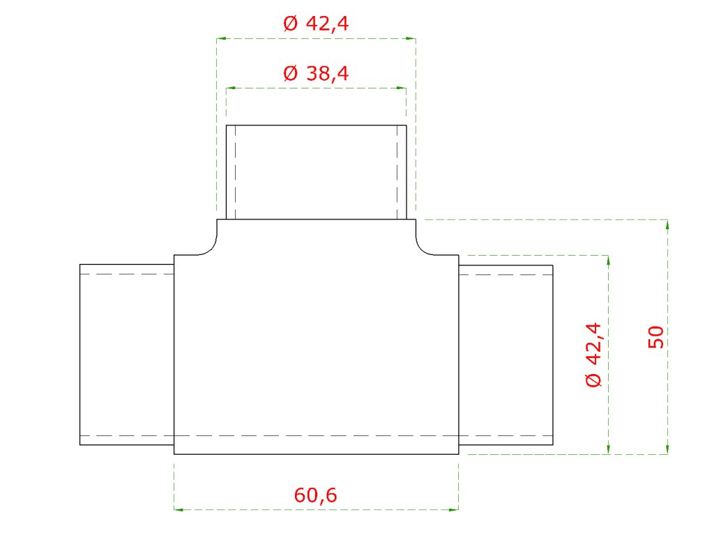 Spojka - přechod, T- kus na trubku o průměru 42,4mm, broušená nerez K320/AISI304