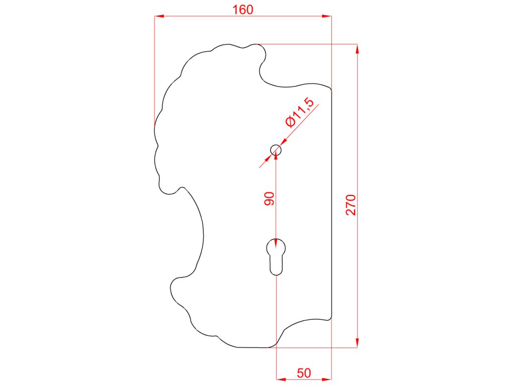 Štít kovaný s otvory H 270xL160mm,rozteč děr 90mm,hr. 3mm
