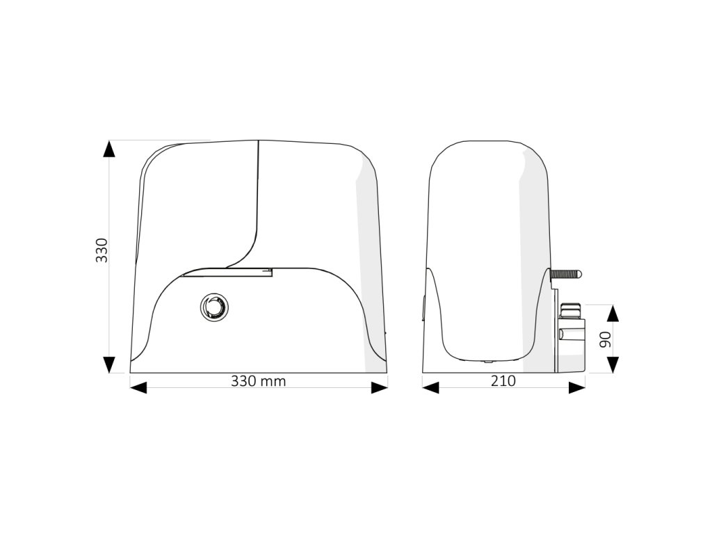 Konstrukci pohonu tvoří pevná základna z hliníku a symetrický kryt se zakulaceným tvarem, který umožňuje nasměrování světelného paprsku, vydávaného LED diodami systému Night Light System, k bráně a průjezdu.