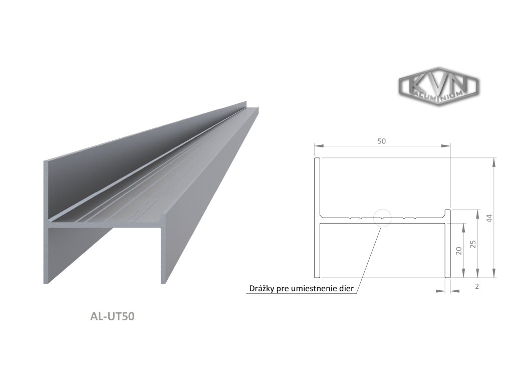 UT-profil o rozměrech 50x44x2mm představuje kvalitní stavební prvek vyrobený z hliníku EN AW-6060 T66. S přírodním hliníkovým povrchem bez další úpravy je antikorozní, tvarovatelný a svařitelný, což z něj činí všestranný materiál pro různé stavební projekty.