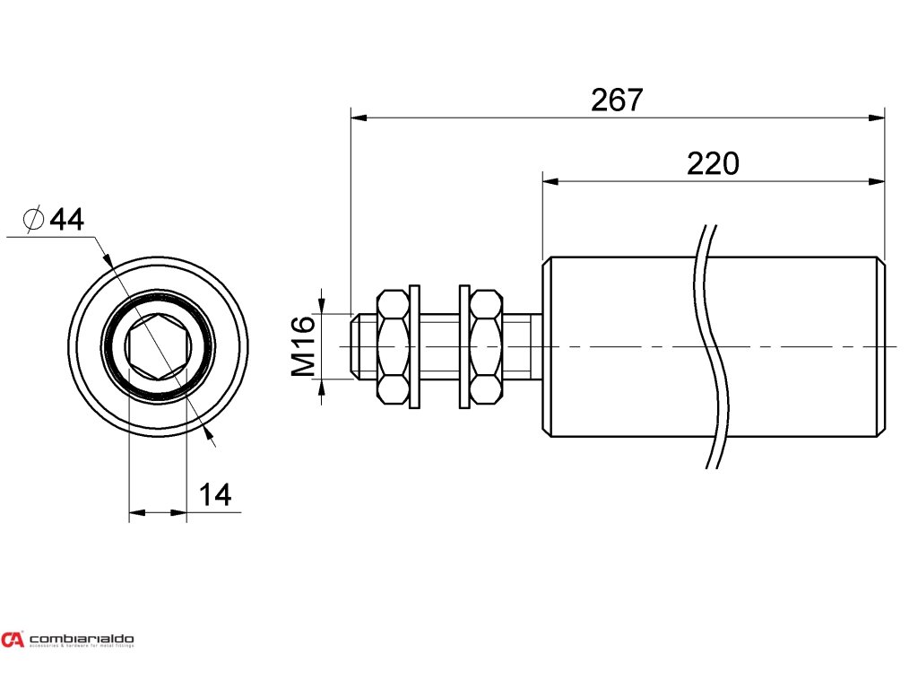 Vodící kladka Combi Arialdo, nylonová, závit M16 (průměr 45mm, výška 220mm)