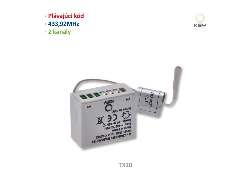 Zabudovatelný vysílač 2-kanálový, plovoucí kód 433,92MHz, včetně baterie